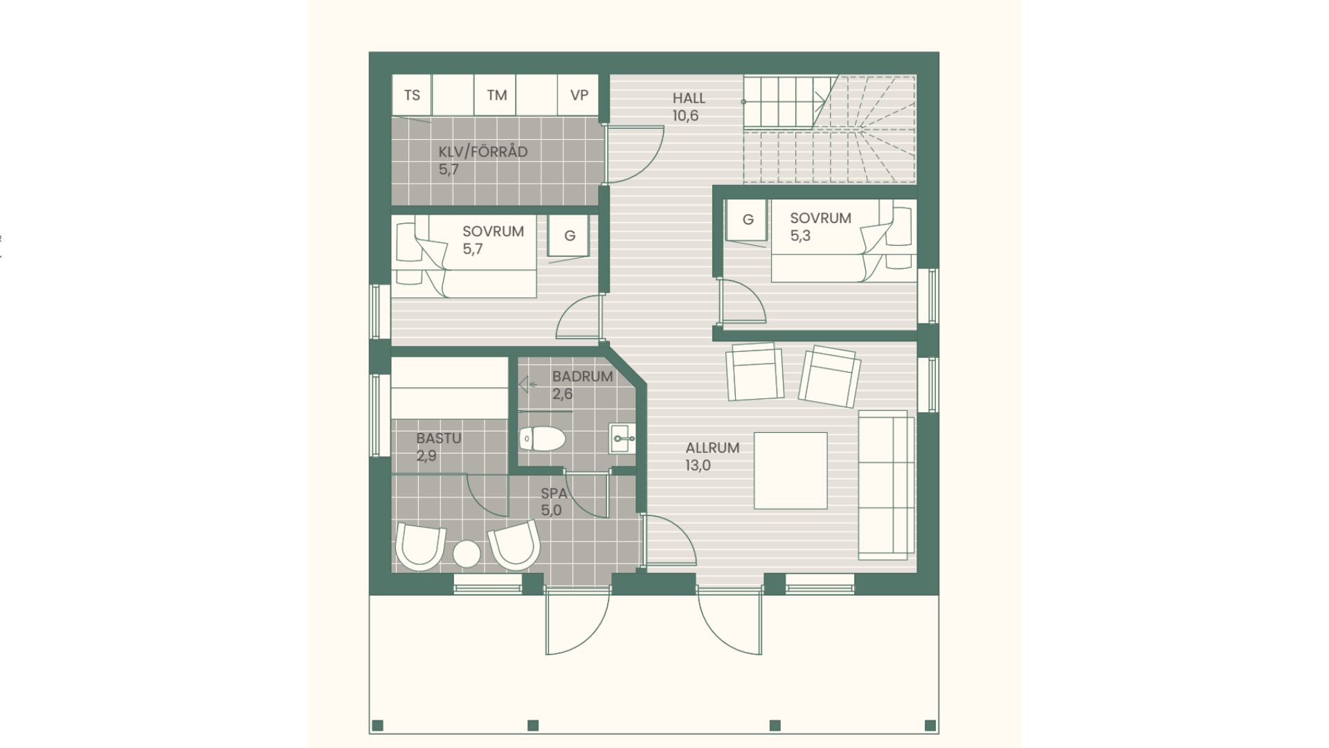 Samtliga av våra husmodeller är anpassningsbara både interiört och exteriört och planlösningen är enbart en mall på huset i sitt originalutförande.